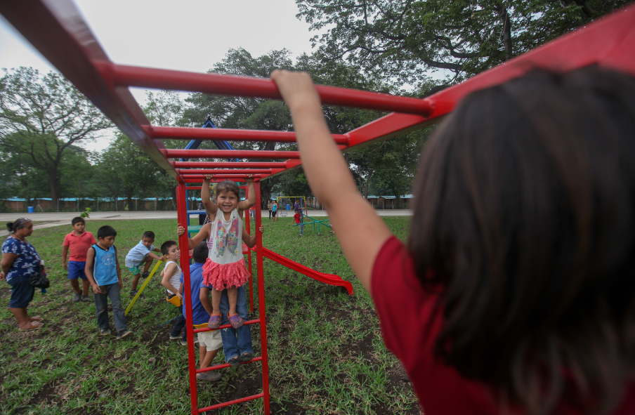 Un nuevo comienzo viven las familias afectadas por la erupción del Volcán de Fuego, a un año de ocurrida la tragedia, ahora los menores sonríen mientras se divierten en el área verde del proyecto habitacional La Dignidad.