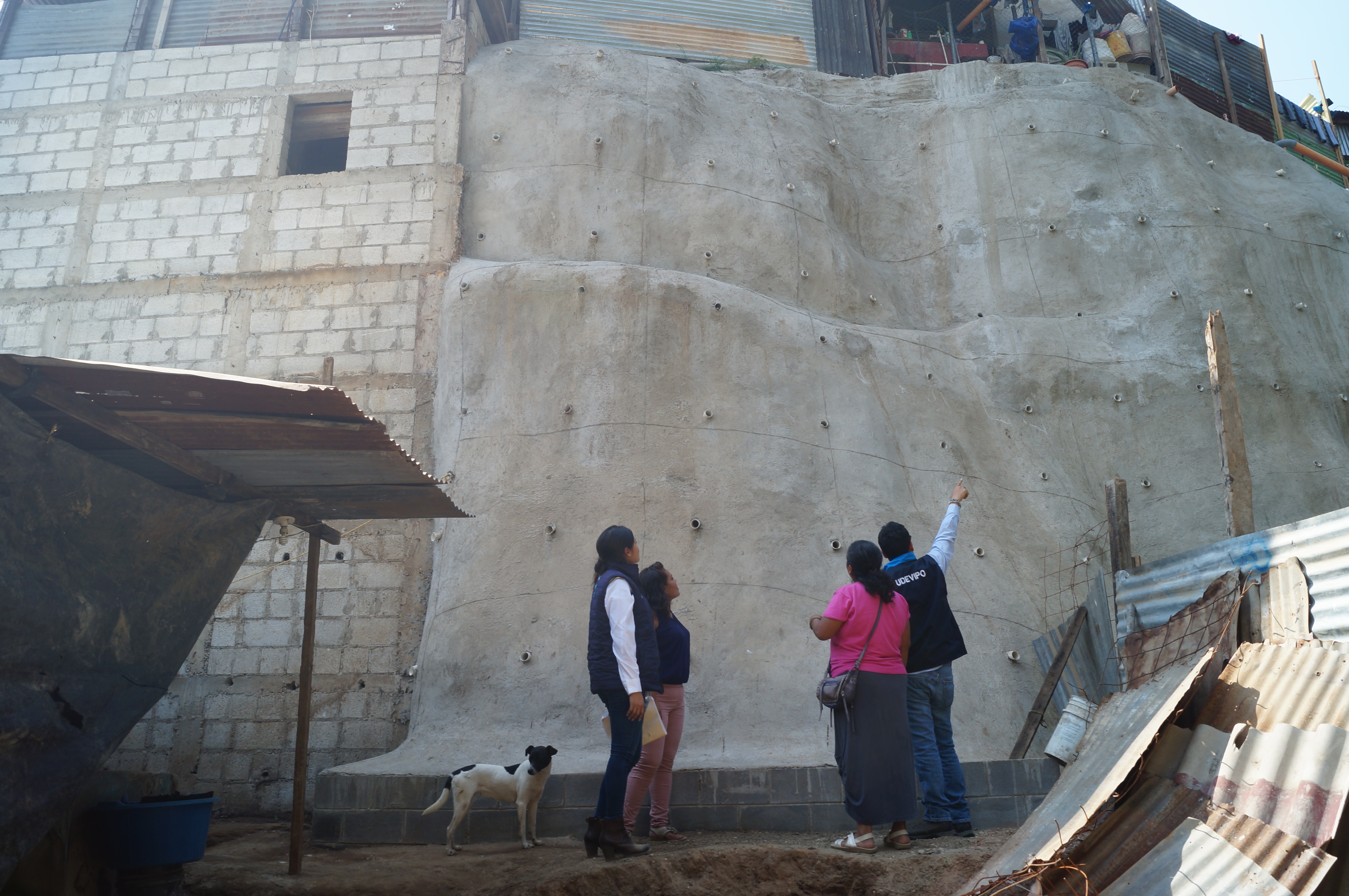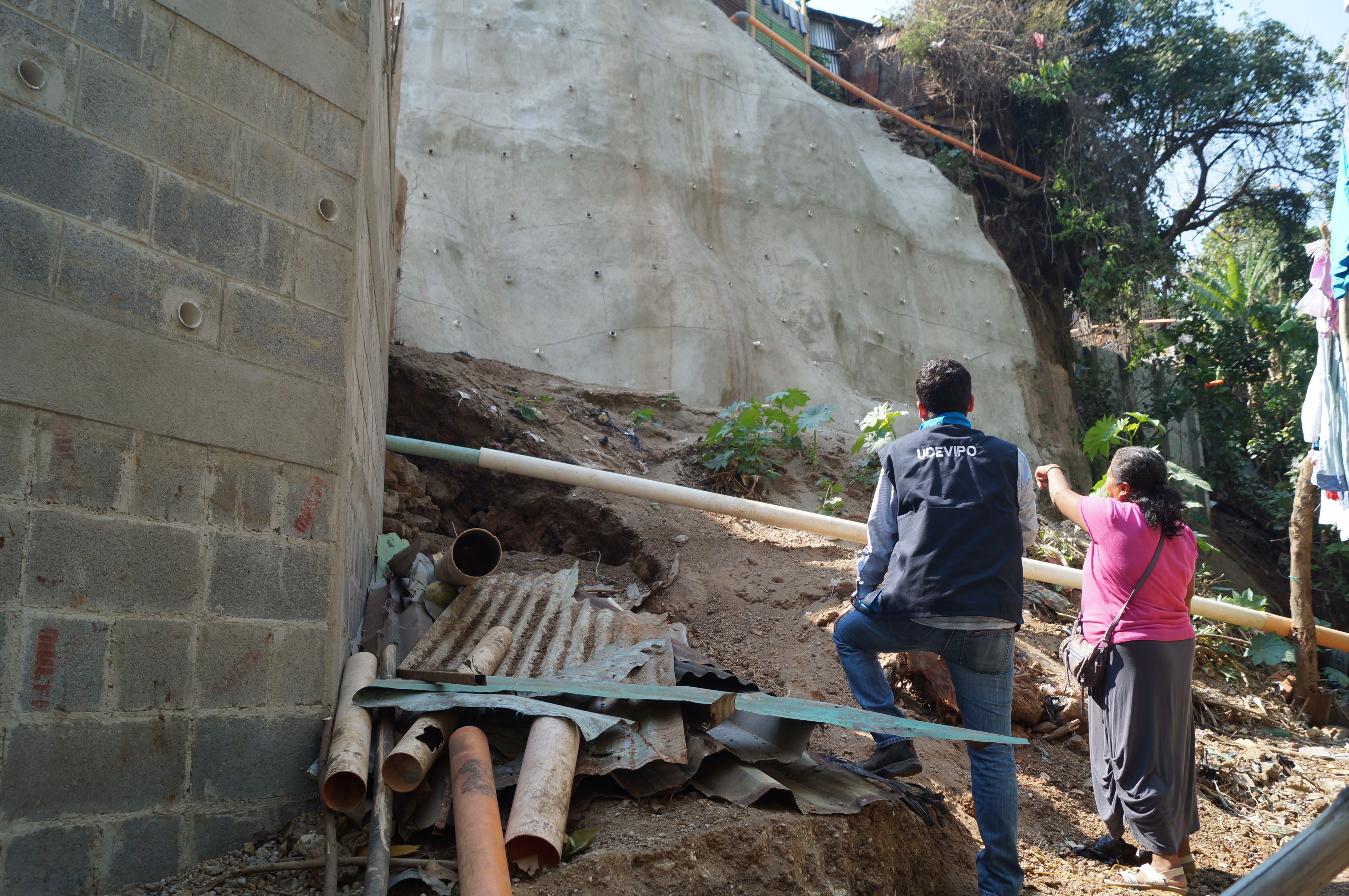 Con el fin de contribuir a que vecinos del asentamiento Unidos por la Fe, en la zona 21, vivan en un lugar más seguro, La Unidad Para el Desarrollo de Vivienda Popular, -UDEVIPO- realizó la construcción de un muro de contención.