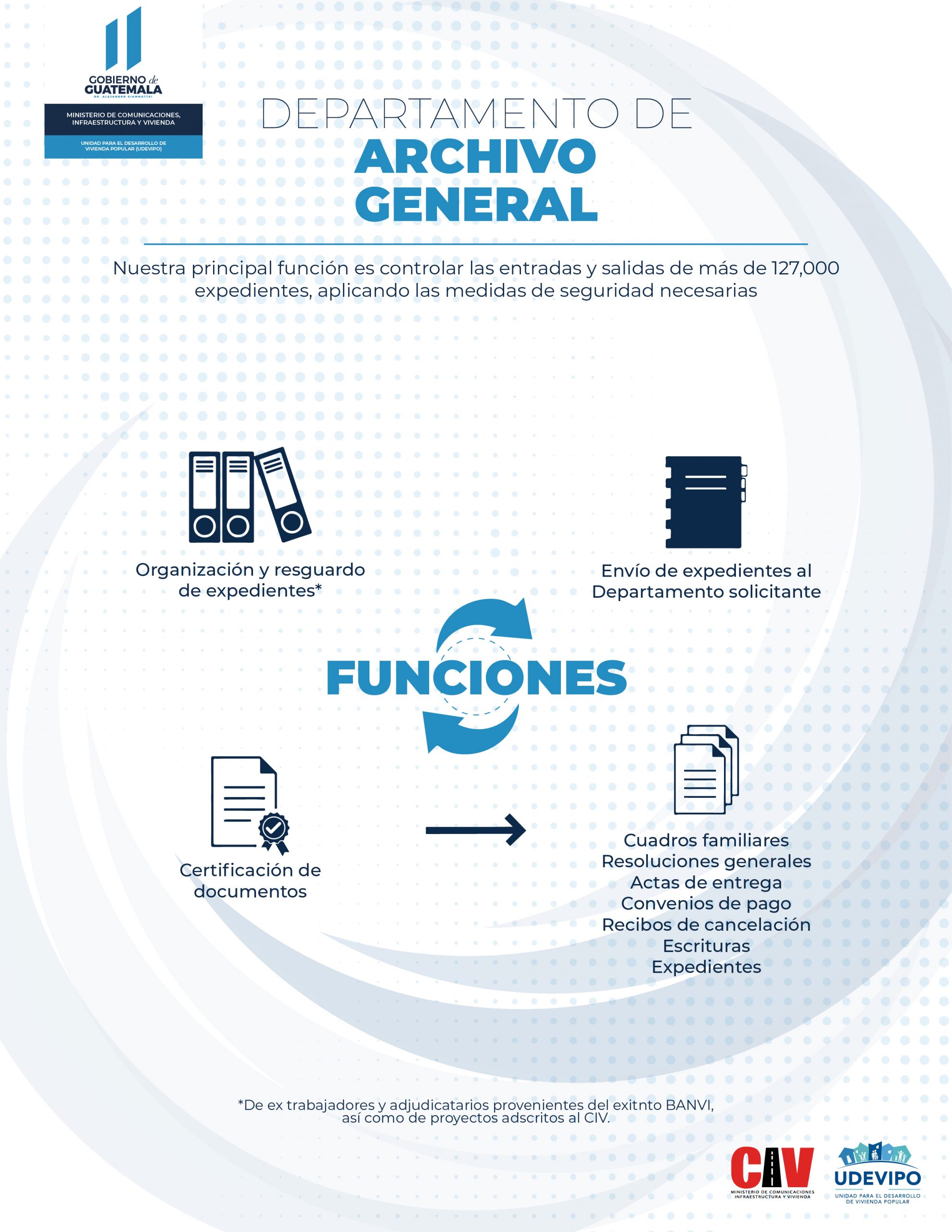 La Unidad para el Desarrollo de Vivienda Popular UDEVIPO, a través de sus diferentes departamentos continúa con sus labores en servicio de los usuarios.