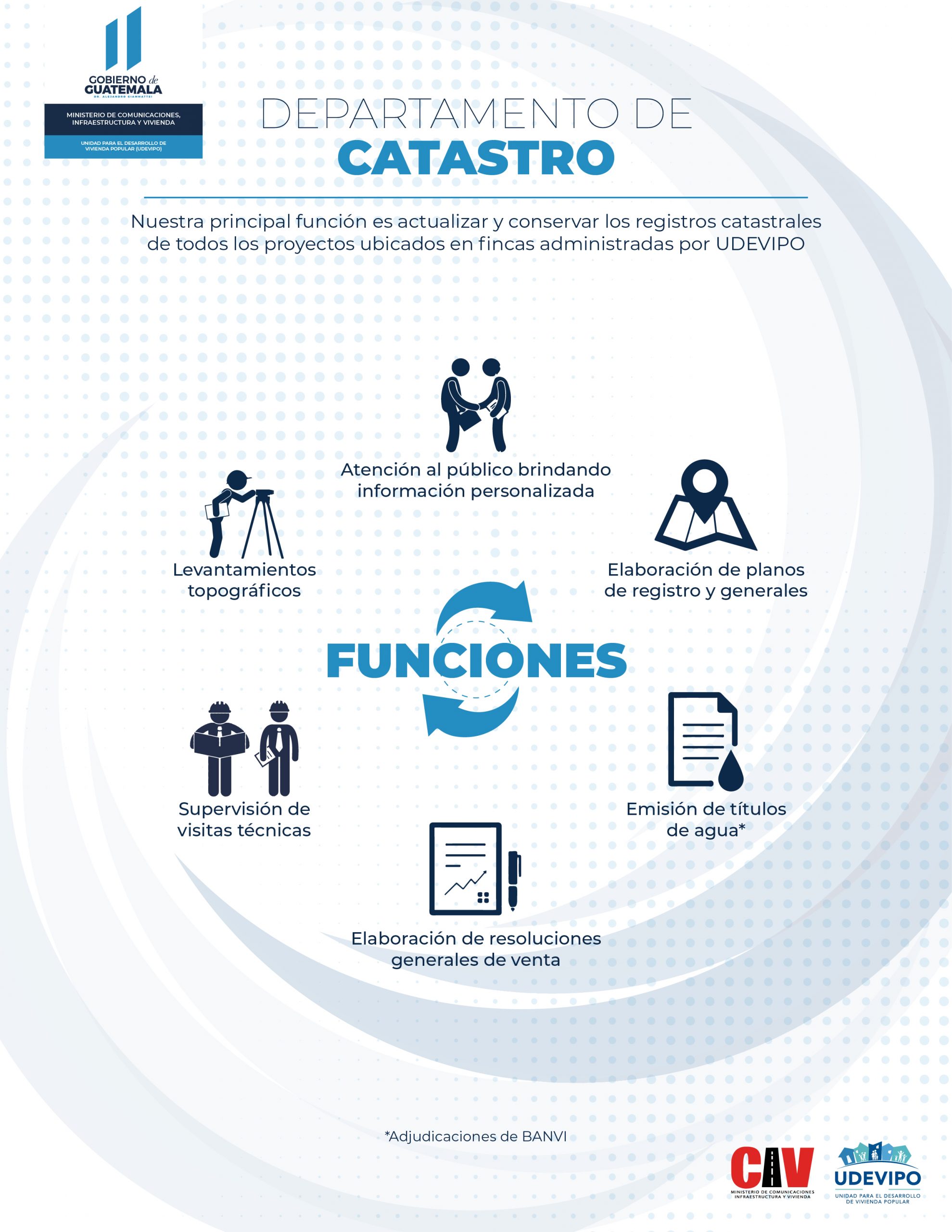Catastro es otro de los departamentos de nuestra Unidad, que entre sus principales funciones están: actualizar y conservar los registros catastrales de todos los proyectos ubicados en fincas administradas por UDEVIPO.